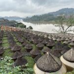 Durante a visita, os membros da delegação exploraram o vasto campo de tanques de fermentação, alinhados ao longo das encostas e acompanhando o curso do rio Chishui. A paisagem singular, composta por centenas de potes de barro cobertos por tampas de palha, impressionou os visitantes, que registraram cada detalhe das instalações históricas.